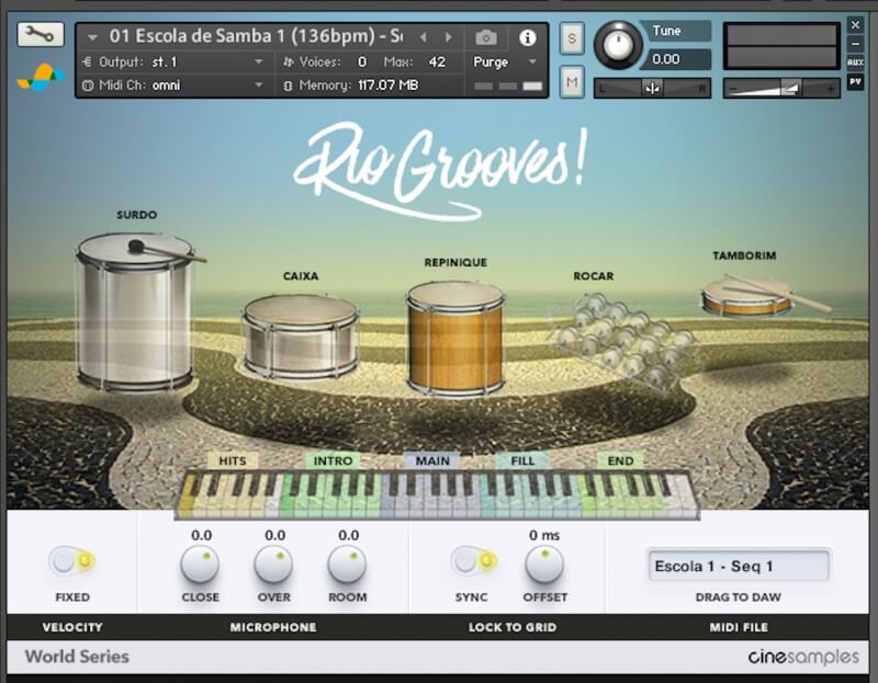 Cinesamples Rio Grooves! Size 1.1 Gb We are excited to introduce what we believe to be the most essential collection of Brazilian rhythms ever made, played by the finest ..