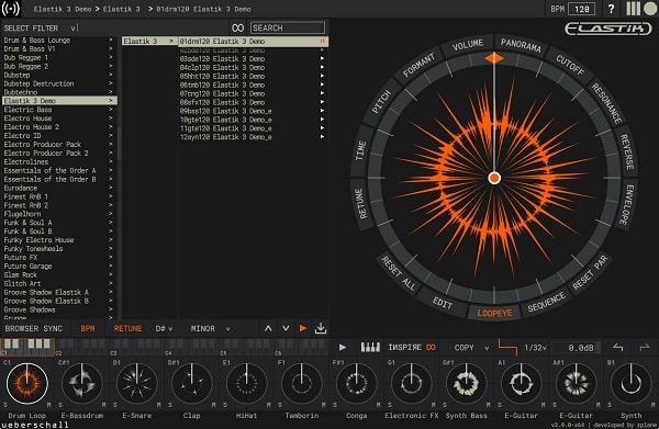 New Interface: Elastik’s central Loopeye forms a detailed loop-editing tool. A large number of parameters can be adjusted, including volume and pan, reverse, formant, filter and resample. Each parameter can be altered on a per-slice basis. Browser and Loopeye can now be viewed side by side.